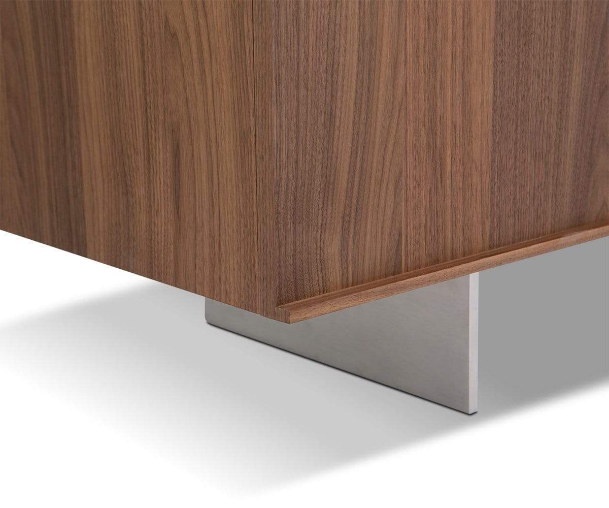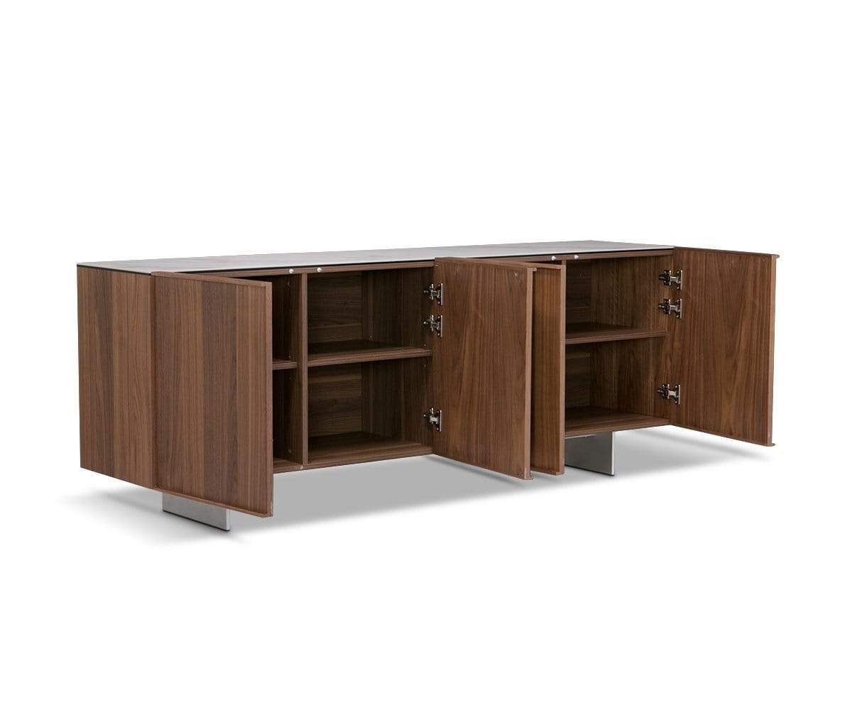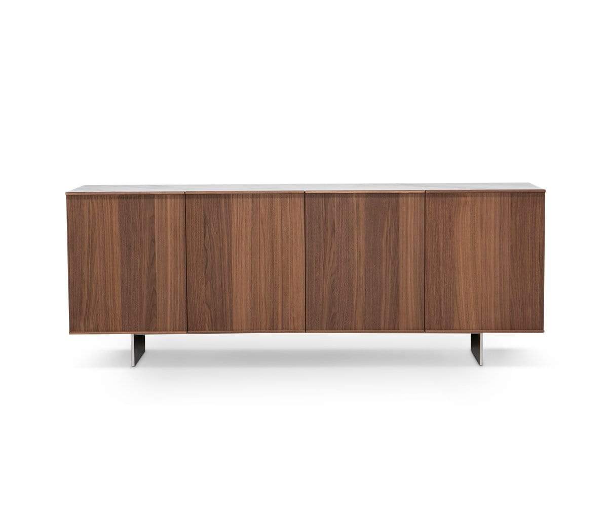 Functional, meet fashionable. That's the idea behind the Acero sideboard. A heat and moisture-resistant ceramic top contrasts beautifully with walnut veneer. Eight shelves and four separate cabinet doors give you plenty of storage for dinnerware, vases and other dining essentials.