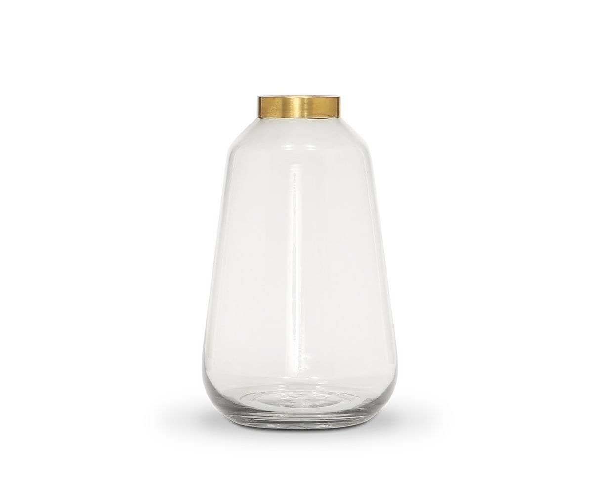 Neutral spaces benefit from pops of metallic color. The Acre glass vases take that concept up a notch. Made from smoke grey glass with a metallic gold rim, these vases perfectly accentuate living, dining and entryway spaces.