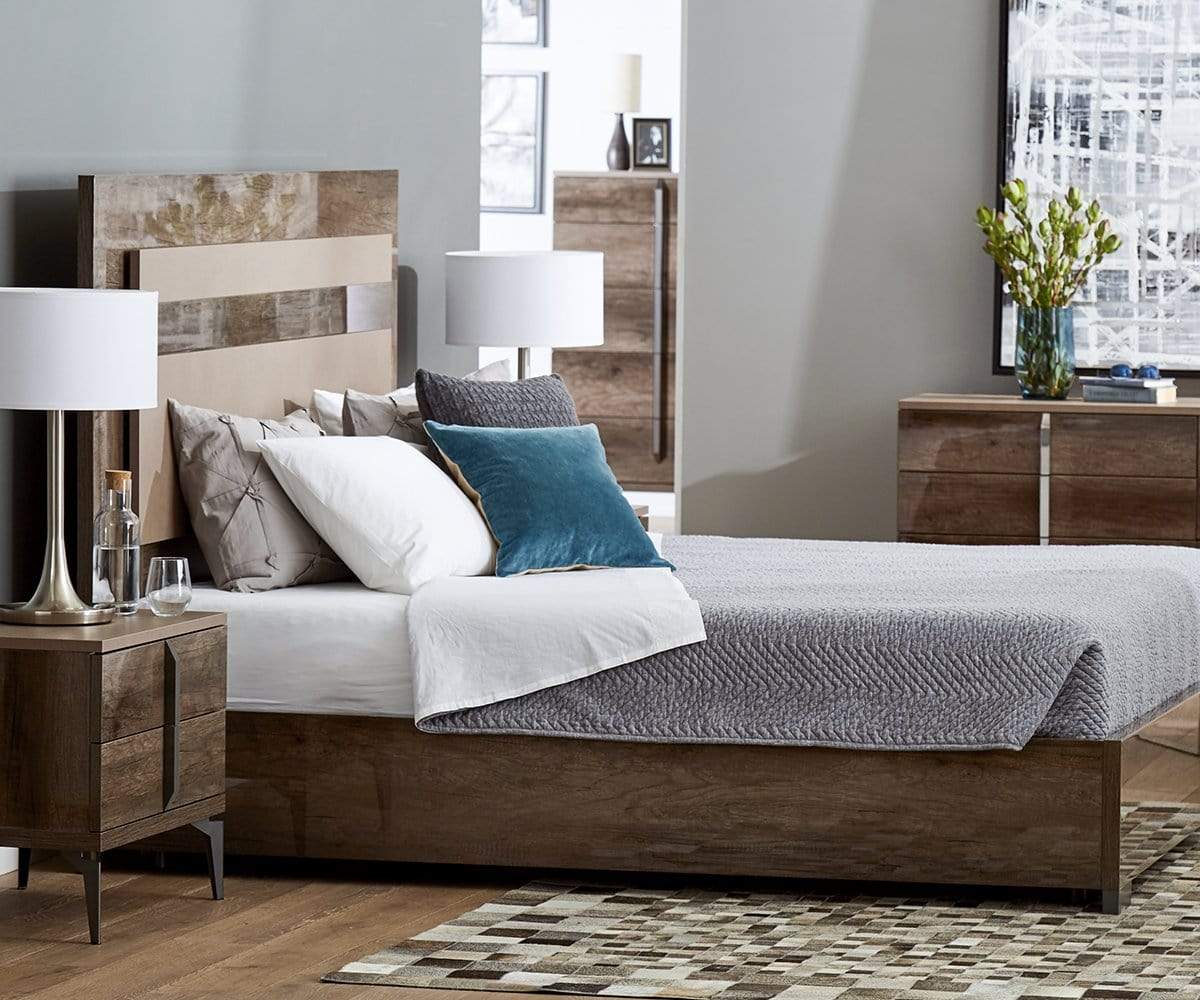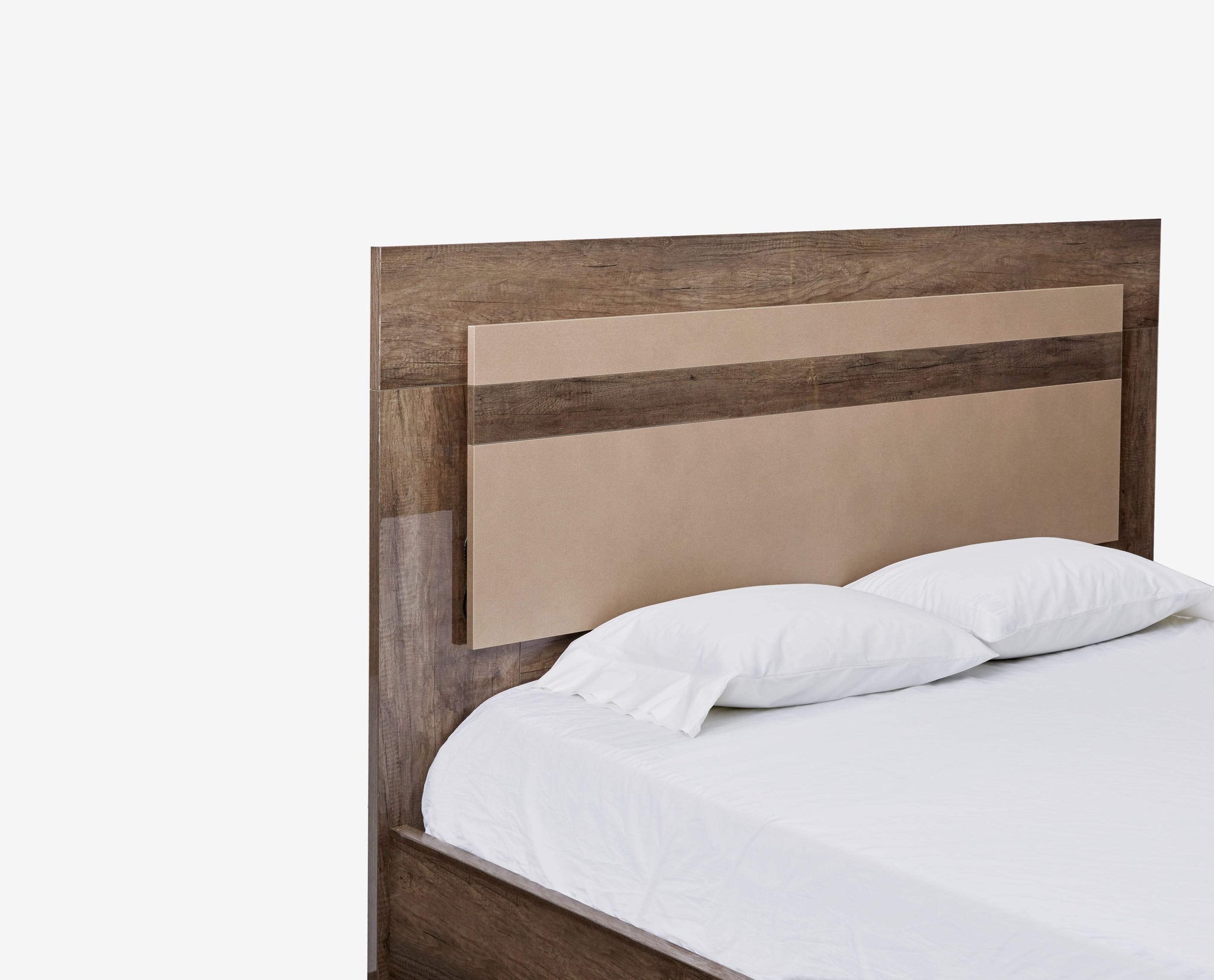 Made in Italy, the Akana bed is a beautiful masterpiece that sets the foundation for your modern room. Two neutral tones and a second layer on the headboard give this piece added dimension, while the pattern of the wood grain finish coated in a high gloss, provide a striking contrast to the strong, straight lines of the overall design.