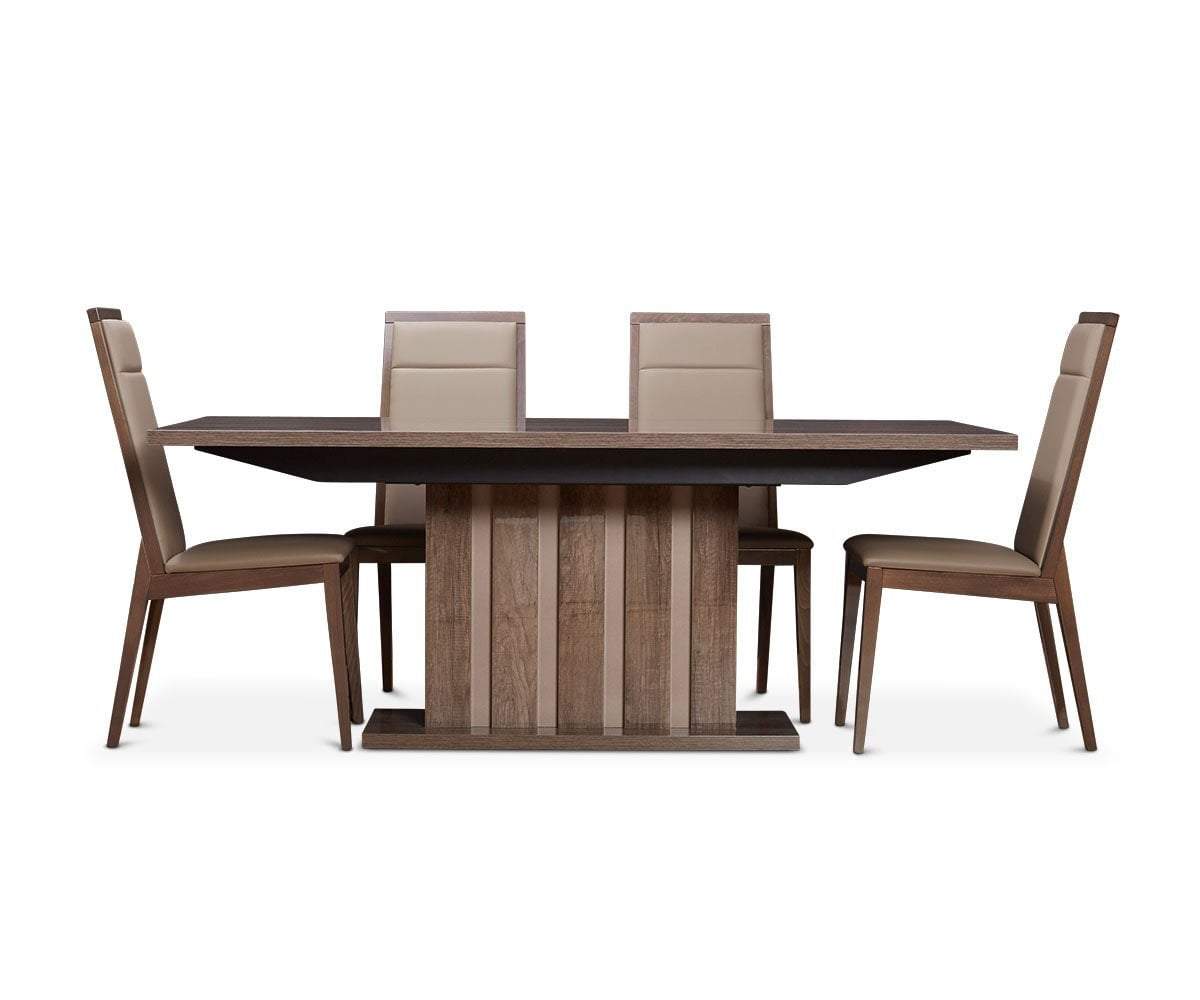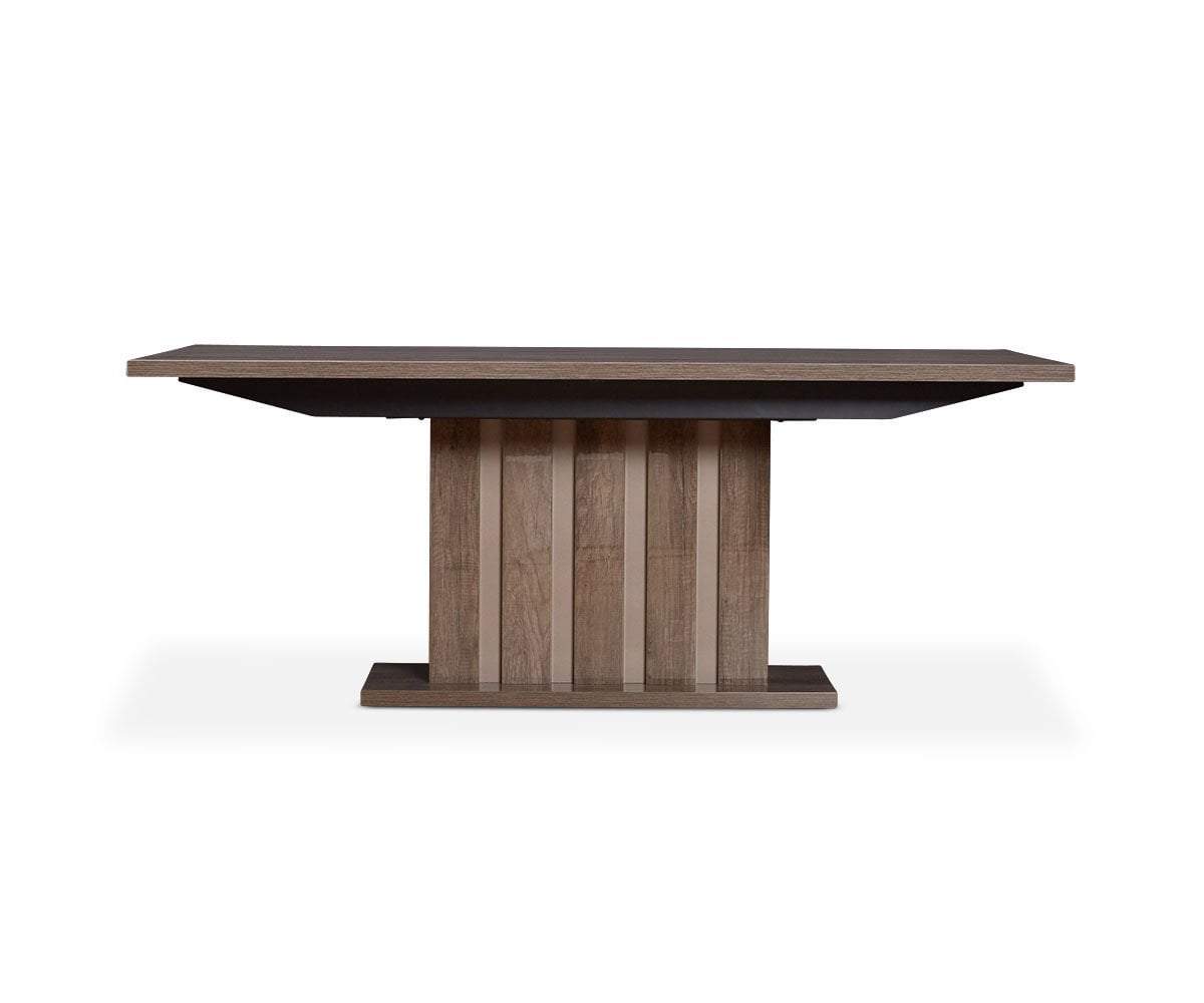 Made in Italy, the striking Akana dining table displays natural warmth from the striking wood grain pattern enhanced by the high gloss finish. Enjoy hosting a small crowd with the help of one leaf, which extends the table to comfortably seat ten. Sleek and handsome, this piece evokes true modern style in your dining space.