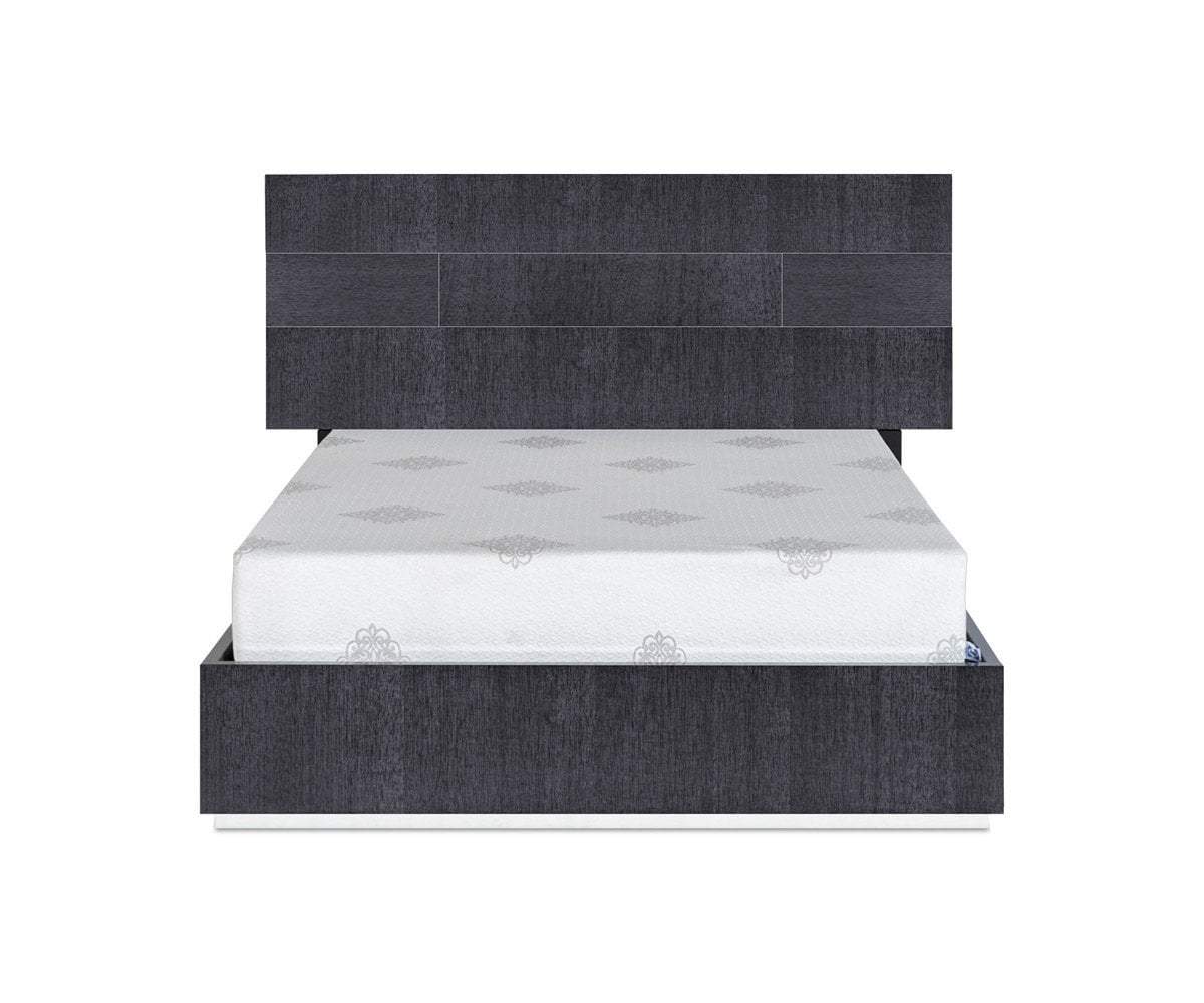 Elegant, bold lines and fine craftsmanship define the Mondiana platform bed. Showcasing grey koto veneer with a high gloss finish that reflects light and adds depth, this piece is sure to be the focal point of any bedroom.Queen bed pictured.