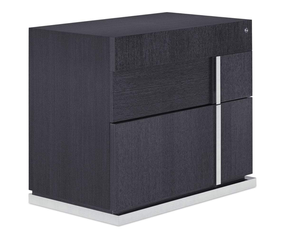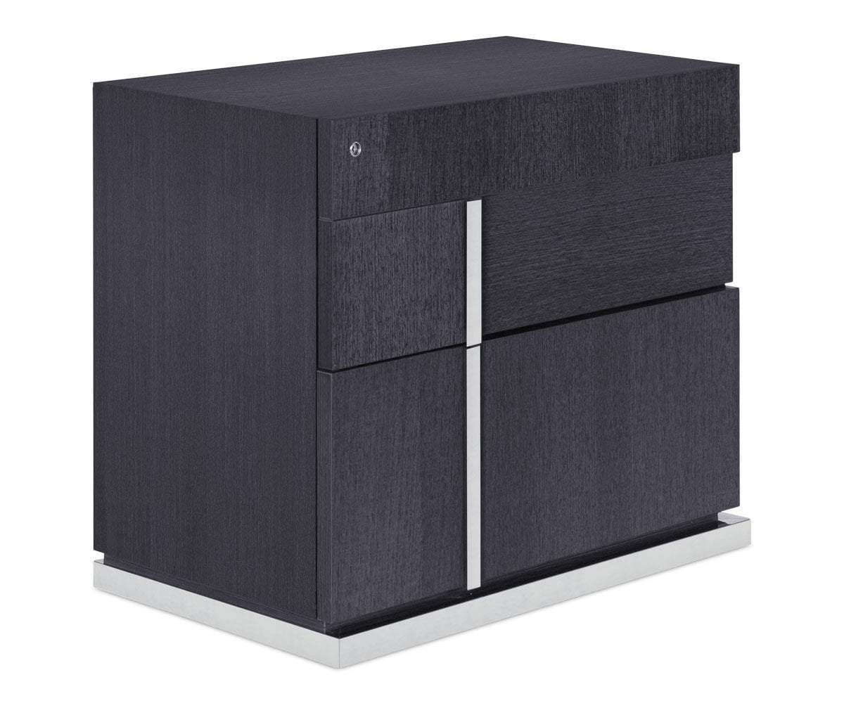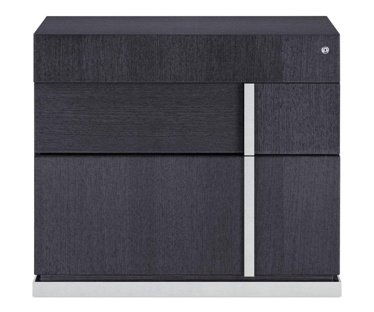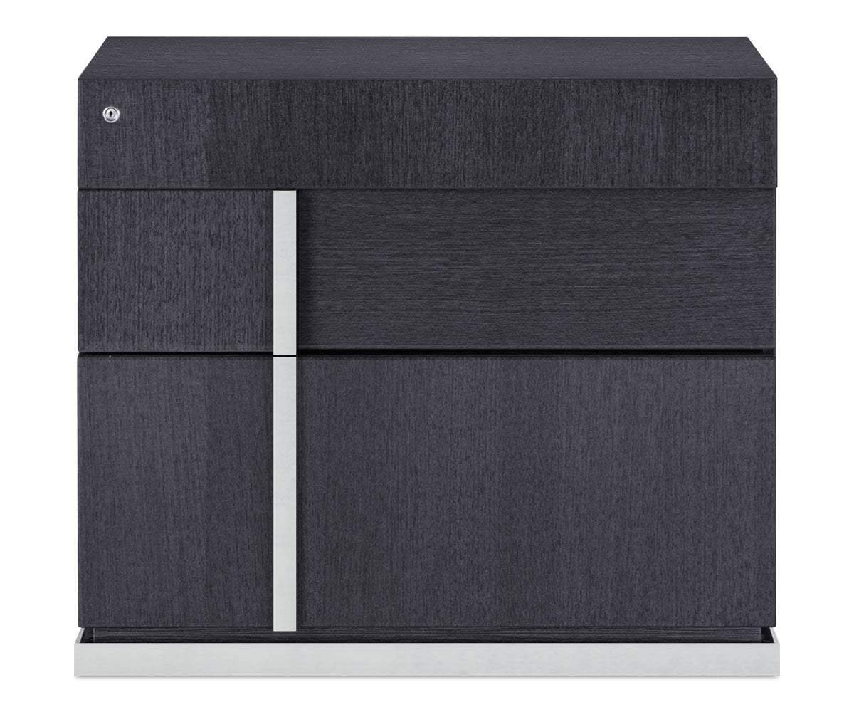 Streamline your work space with the Mondiana lateral file cabinet. The clean design features a high gloss finish over a striking grey koto veneer. Crisp, modern drawer pulls complete the look.