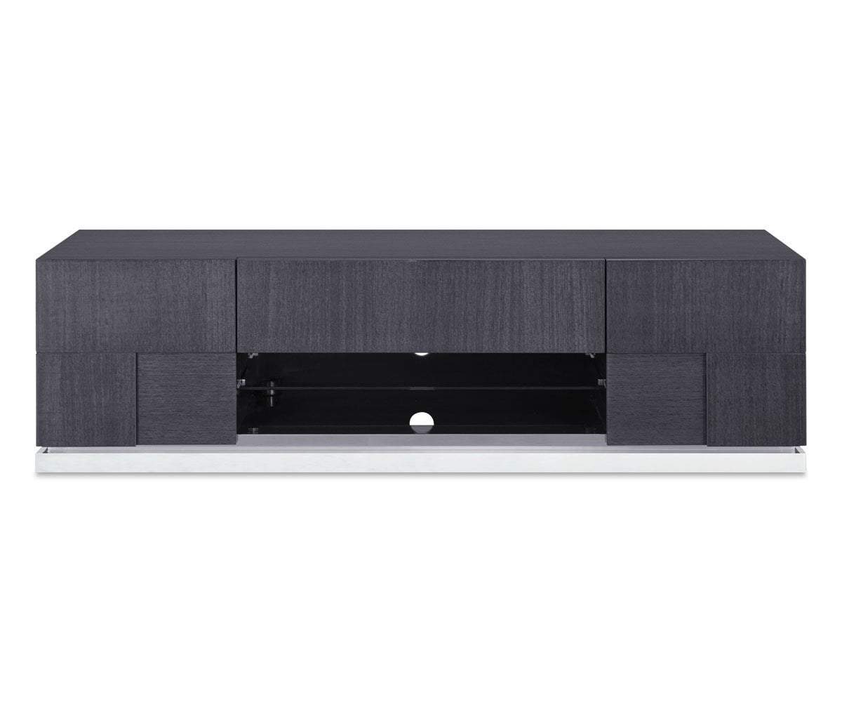 Your flat-screen TV deserves an entertainment center just as sleek. The Mondiana entertainment base is the answer. The contemporary style is expertly crafted in an attractive grey koto veneer with a protective high gloss finish.